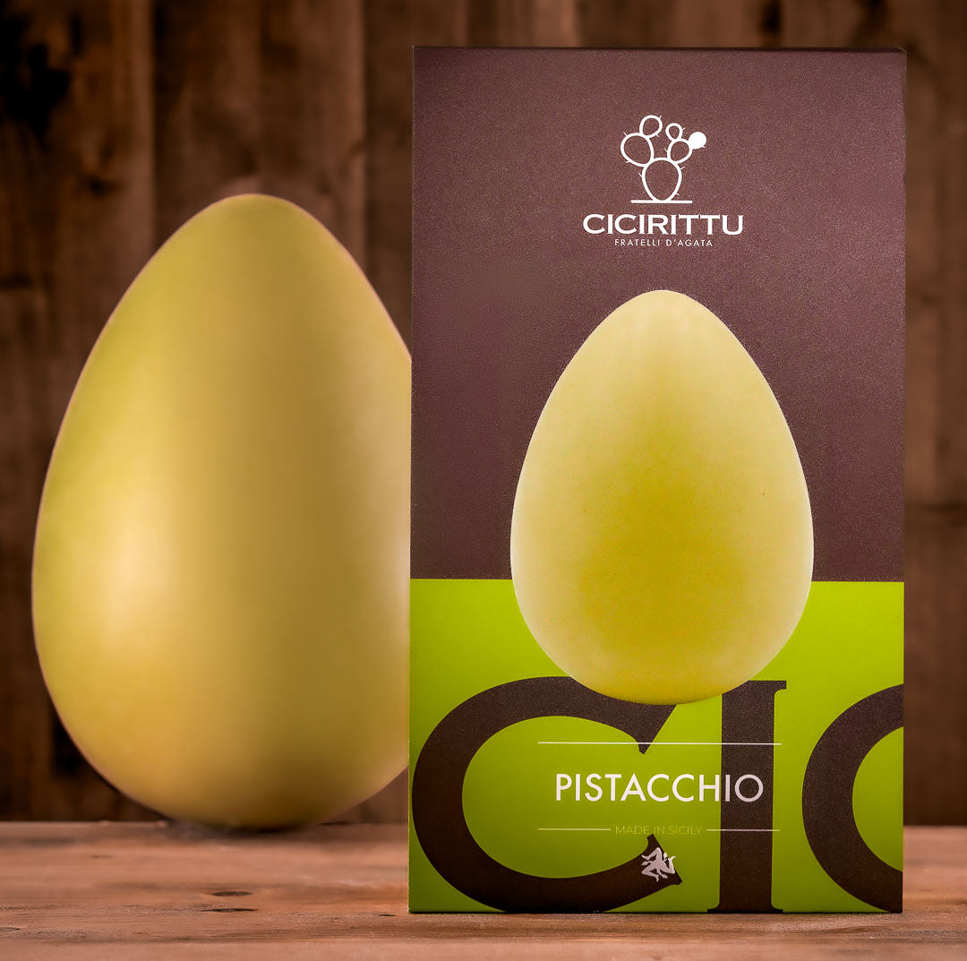Zartschmelzende, herzhafte und köstliche Pistazienschokolade . Hergestellt ohne Konservierungsstoffe, Halbfertigprodukte, Aromen oder Pflanzenfette. Unsere Eier sind 100 % handwerklich hergestellt, mit viel Liebe und nach traditioneller Art von Cicirittu.
